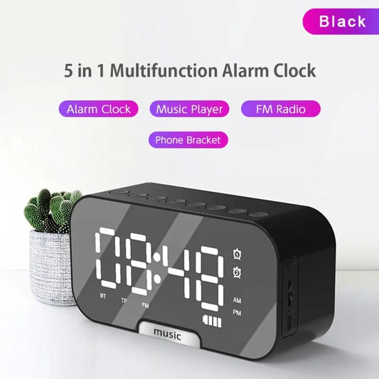 Bluetooth Speaker with LED Mirror Screen Digital Dual Alarm Clock with FM Radio Phone Holder Temperature For Bedroom Office